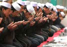 Solat sunat hari raya di sebuah daerah di China diadakan di sebatang jalan raya, ribuan jemaah yang membanjiri.